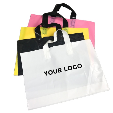 Saco de compras plástico cortado com alça para mercadorias LDPE HDPE personalizado com logotipo impresso personalizado